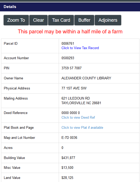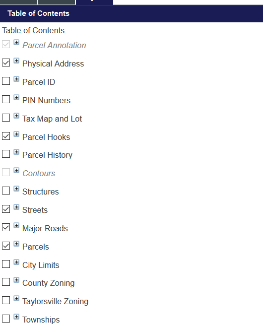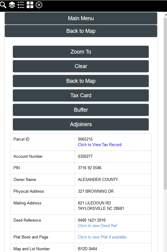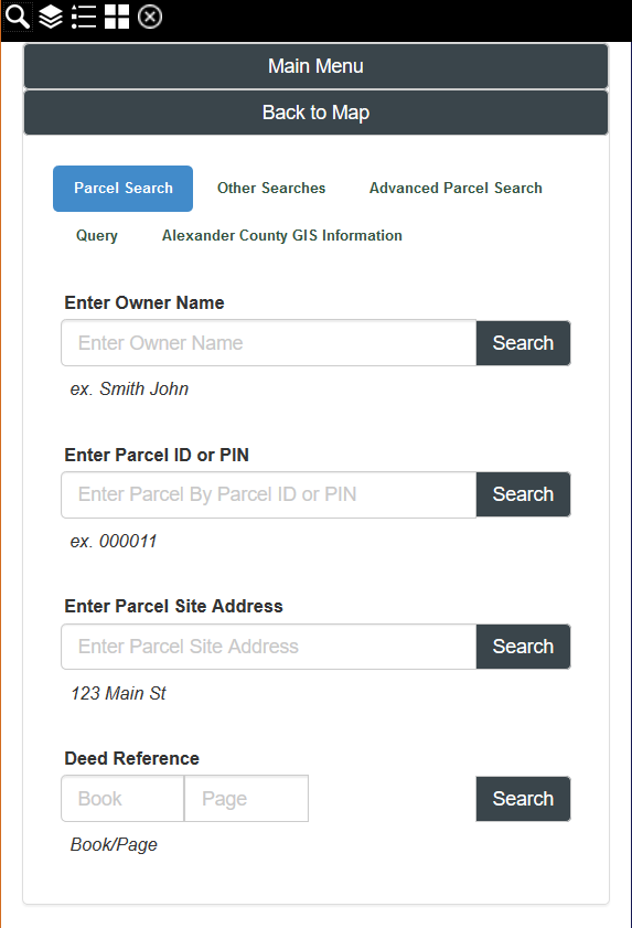 The Webviewer's primary focus is looking up parcel information, so the initial search panel has some common searches for looking up a parcels
