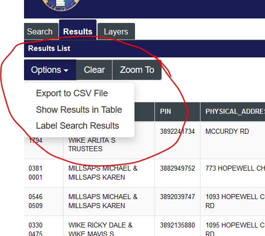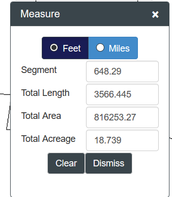 Clicking on the Clear Button, clears all the map graphics on the map and removes any search results that you may have had in the Report or Results window.