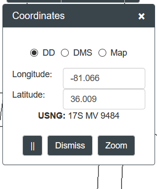 Note: All the coordinates are NOT survey quality and therefore only approximations.