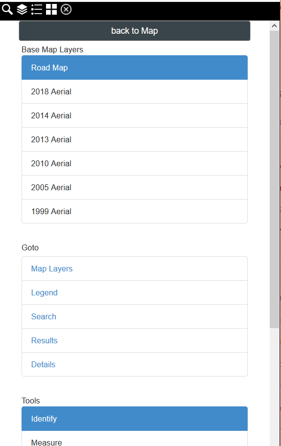 Note: If you identify a feature on the map, it will reopen a closed side panel to enable you to see the information.